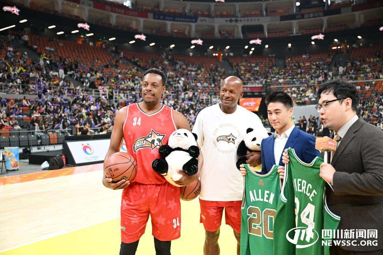 9月27日晚,当终场哨声响起,保罗·皮尔斯把球鞋和签名版球衣抛向看台,何猷君把熊猫公仔送给雷·阿伦,2025聚星名人赛,在成都五粮液文化体育中心闪亮登场,又完美落幕。