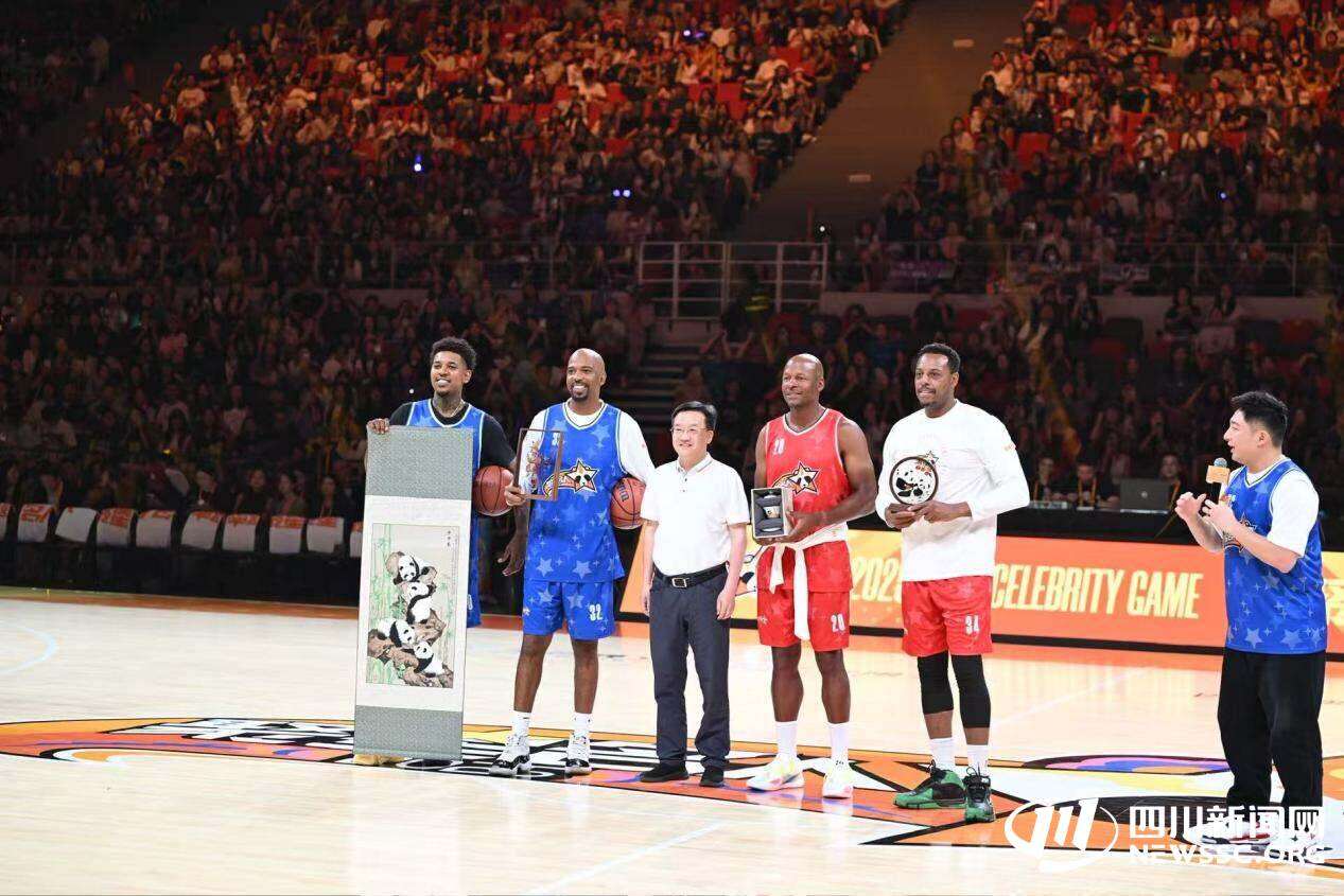 球场内,四川省文化和旅游厅厅长陈光浩为NBA球星送出了熊猫刺绣挂画、皮影以及茶具。巴蜀文化跟国际接轨,机会绝佳。