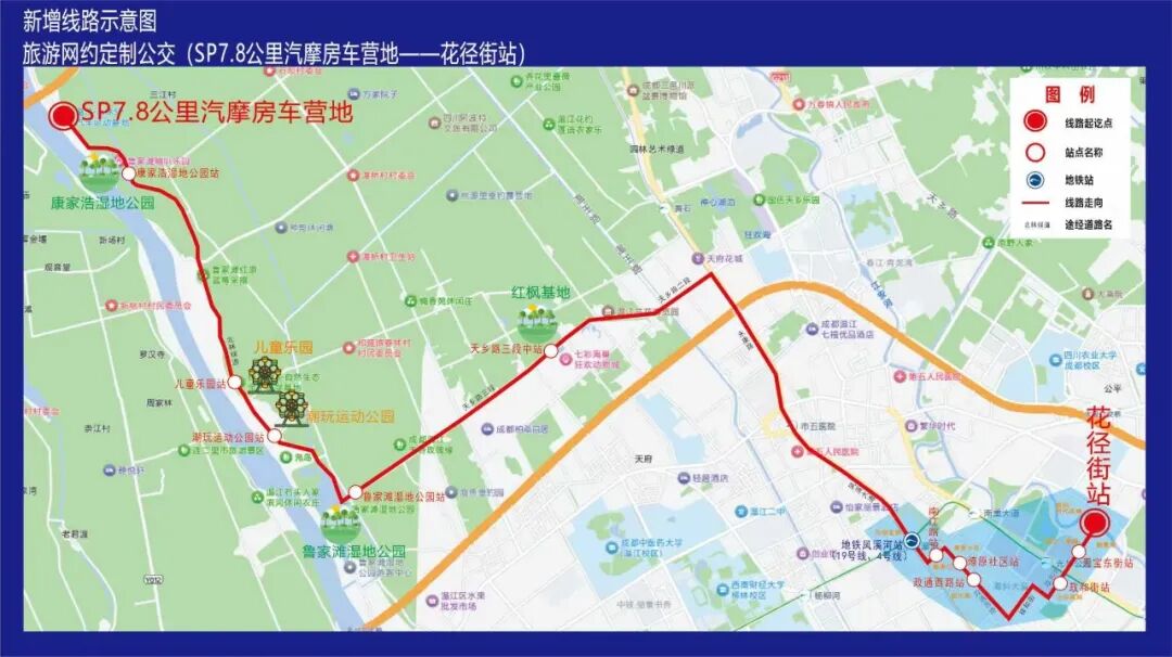 站点名称:SP7.8公里汽摩房车营地、康家浩湿地公园站、儿童乐园站、潮玩运动公园站、鲁家滩湿地公园站、天乡路三段中站(红枫基地)、向阳茗苑(地铁凤溪河站)、格凌兰(南江路站)、燎原小区(燎原社区站)、恒大城(政通西路站)、光华国际(政和街站)、珠江新城(天宝东街站)、朝阳时代西锦(花径街站)