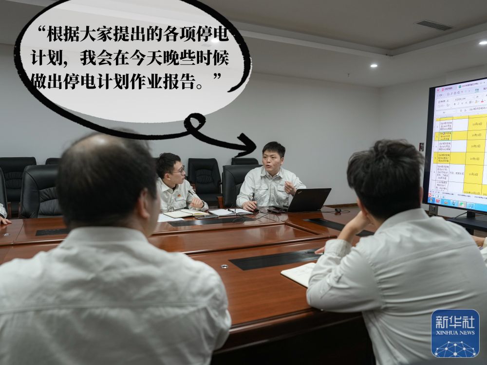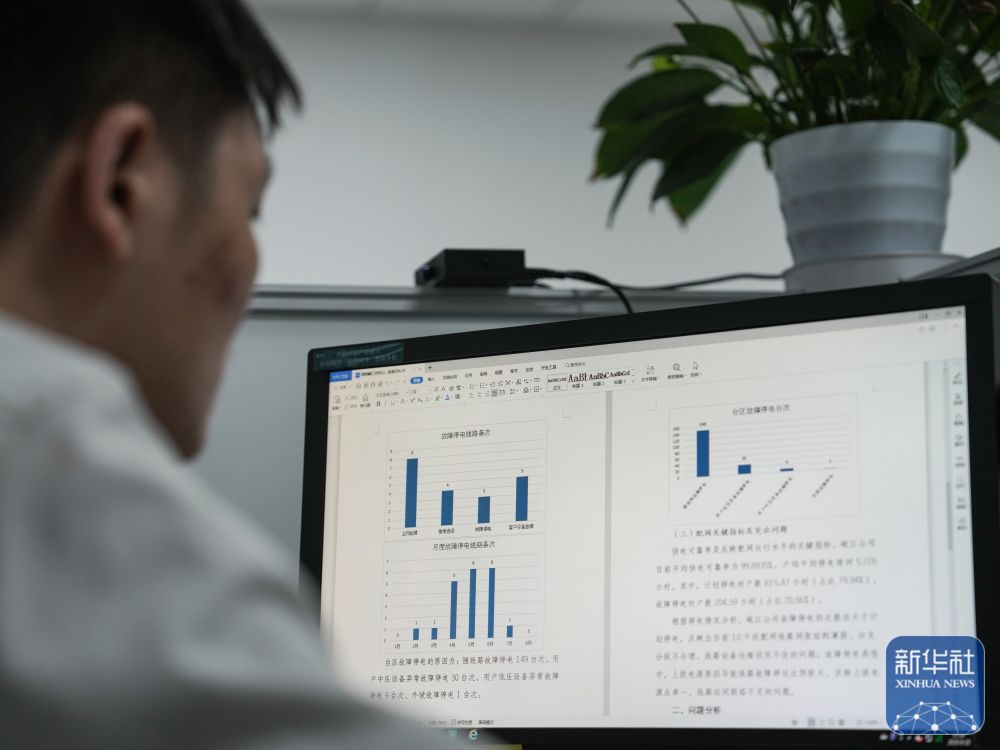 朱鹏宇在办公室分析中压配电线路负荷规律,优化避峰停电方案。