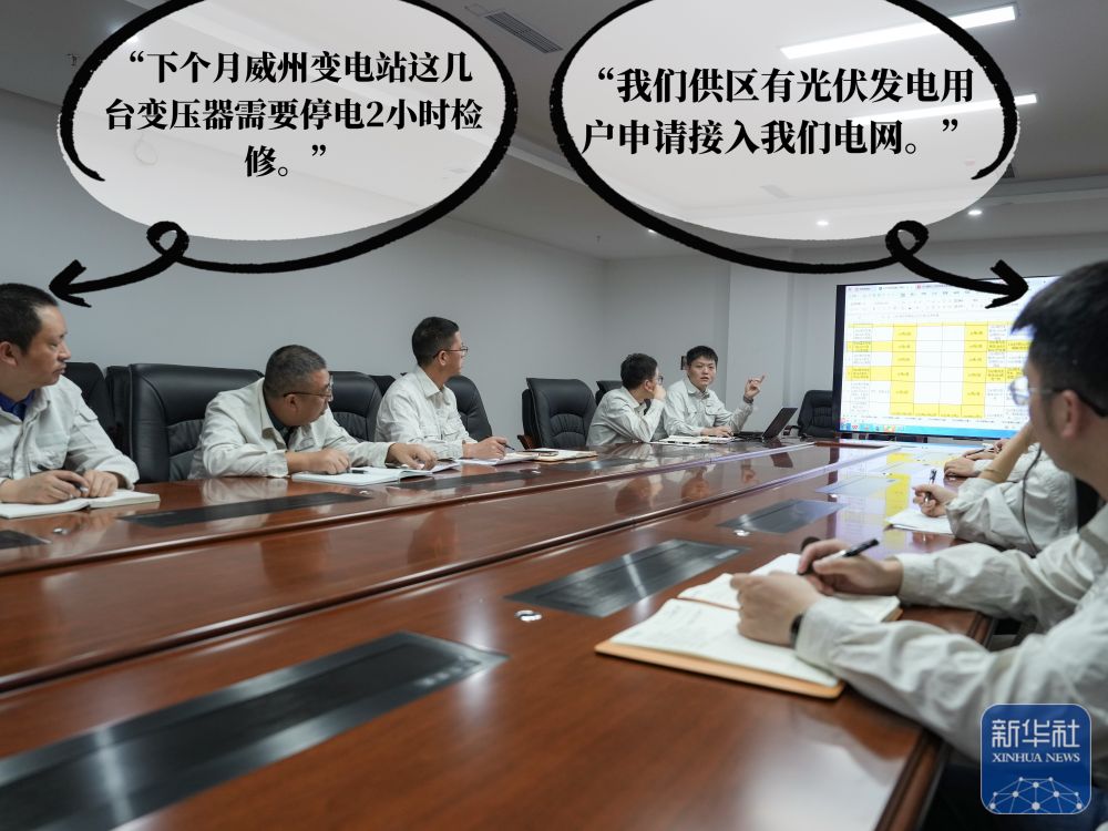 在国网岷江供电公司电力调度控制中心,朱鹏宇和同事对电力系统整体运行情况的各项指标数据进行监测。