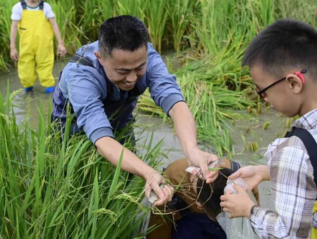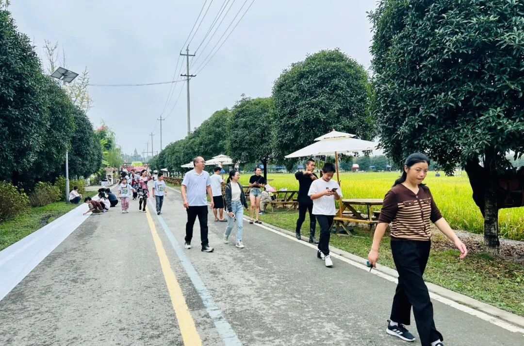 八大文旅消费场景遍布村落:游客漫步田埂,在“稻田博物馆”中触摸农耕文化的温度;孩子们卷起裤脚,尽情体验“稻田摸鱼”的乡趣;林间小火锅与蒸笼宴飘香四溢,露营地活动精彩纷呈,特色市集旁的“稻田音乐会”更将气氛推向高潮。不少游客感叹:“这才是向往的乡村生活!”
