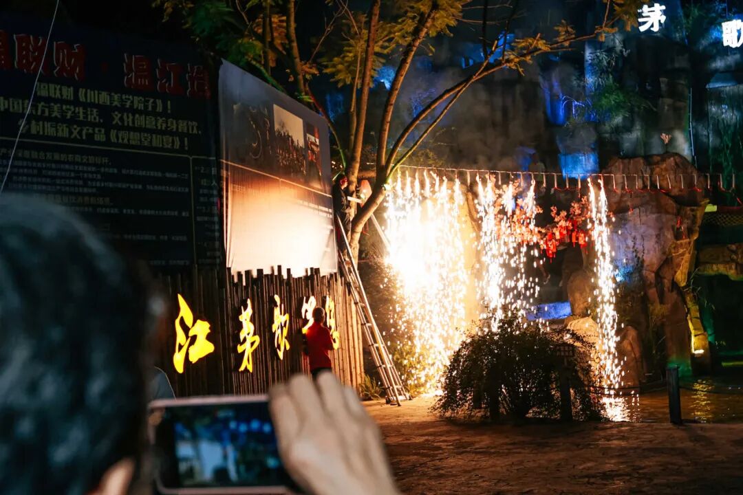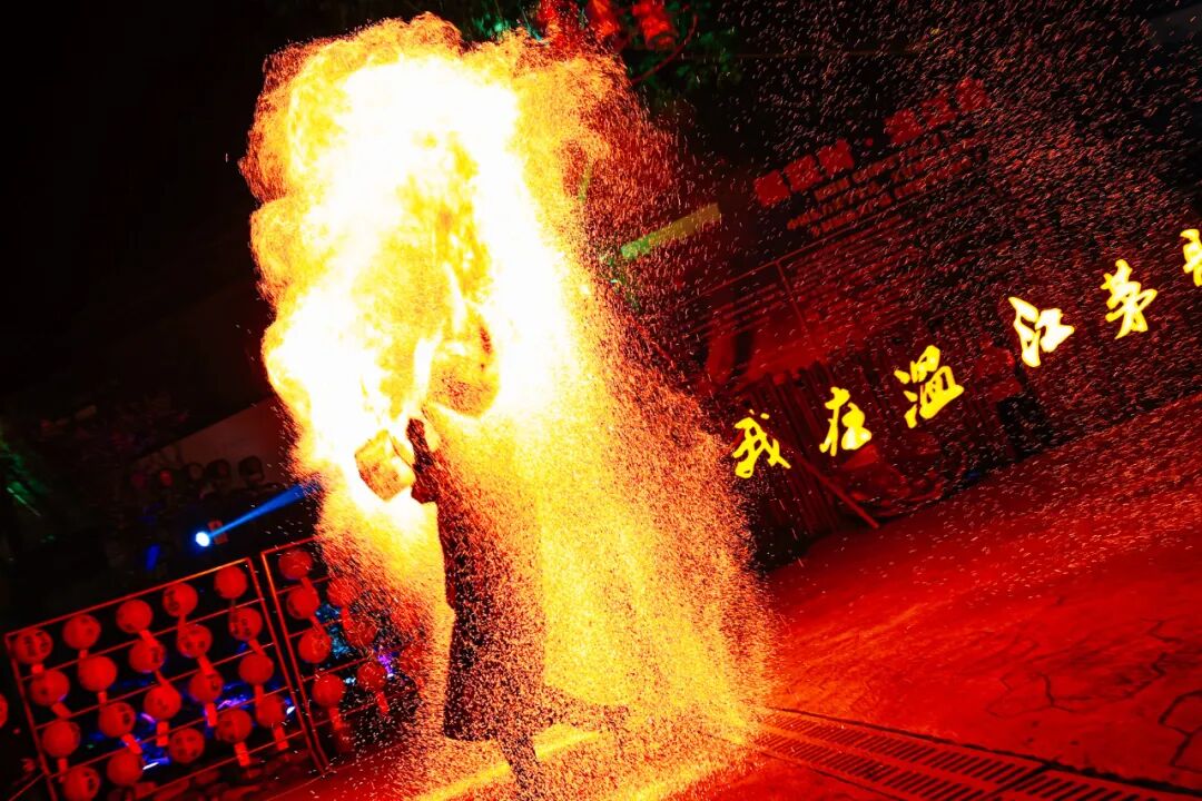 当夜幕降临,茅歌水韵湖畔生态火锅则用另一种方式点燃了假日的激情。湖光山色间,火锅蒸腾起诱人的热气。晚上八点,非遗打铁花表演将现场气氛推向高潮,灼热的铁汁被奋力挥洒,在夜空中划出璀璨的流星,又与湖面的倒影交相辉映,引得观众阵阵惊呼。