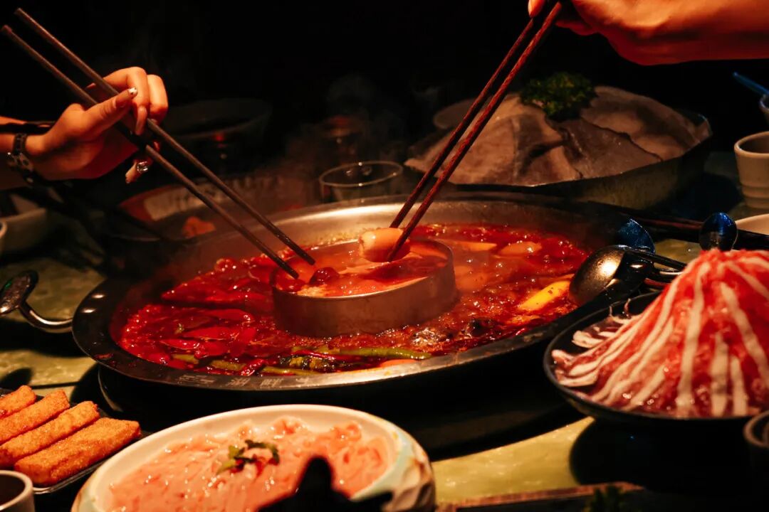 “太震撼了!我们一边涮着毛肚,一边看‘铁花映水’的盛景。”与家人一起前来聚餐的赵女士感慨道。此外,《水韵青花》水上群舞、川剧变脸等节目轮番上演,为传统的火锅聚餐赋予了极致的艺术体验。