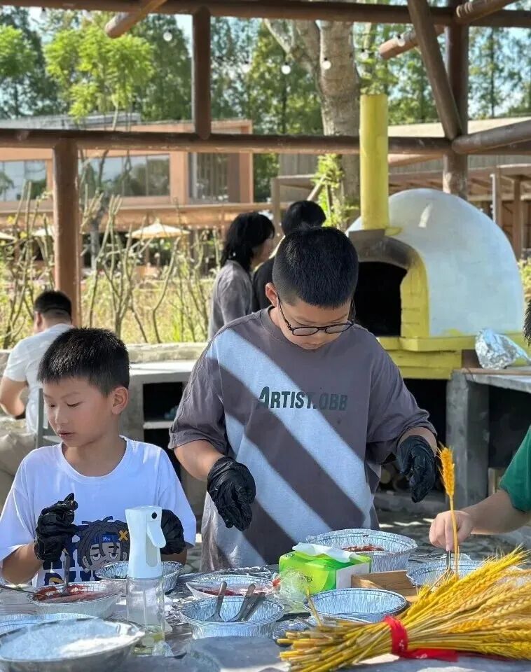 节前刚开始试营运的“耕社”,在这个假期已成了不少市民游客微度假的打卡地。记者到访时,几个家庭正在户外面包窑前体验窑烤披萨DIY。在工作人员的指导下,大家认真地揉面、铺上芝士和火腿,脸上洋溢着创造的快乐。