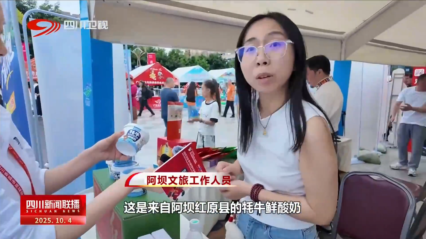 阿坝文旅工作人员:这是来自阿坝红原县的牦牛鲜酸奶,我们红原县是海拔3600米的大草原,我们的牦牛是散养在大草原上面的,喝的是雪山上面流下来的纯净的水。