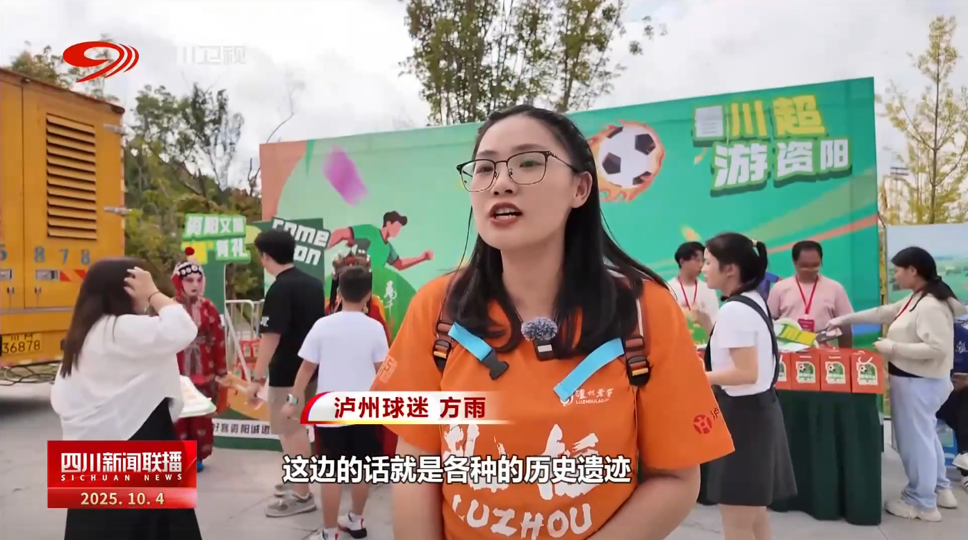 泸州球迷 方雨:这边的话就是各种的历史遗迹大家都是比较熟悉的,泸州到资阳是比较近的,然后国庆期间(A级景区)免费,我们还是很愿意过来玩的。
