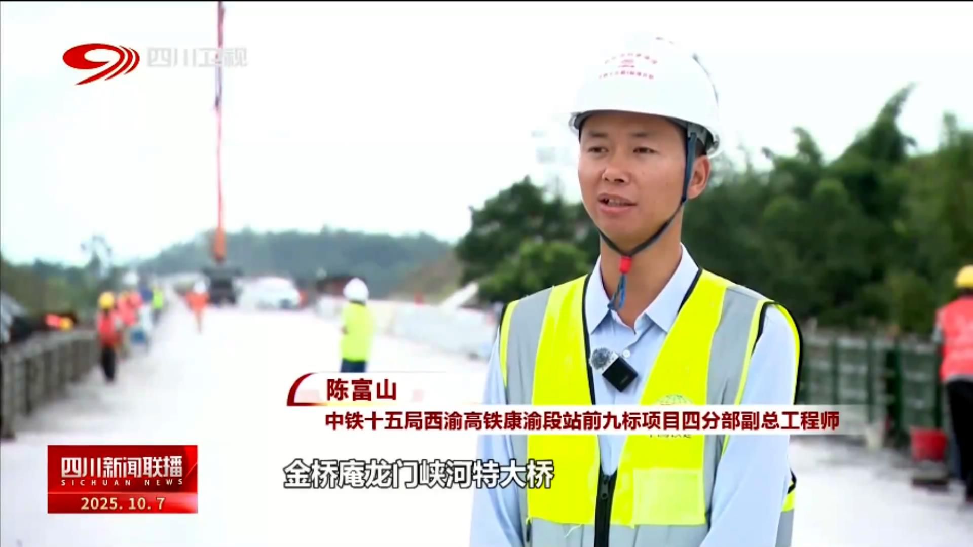 中铁十五局西渝高铁康渝段站前九标项目四分部副总工程师 陈富山:金桥庵龙门峡河特大桥、柴湾特大桥重难点桥梁已完成架梁,全面转入桥面系施工。全体人员正全力以赴、攻坚克难,确保年度施工目标顺利完成。