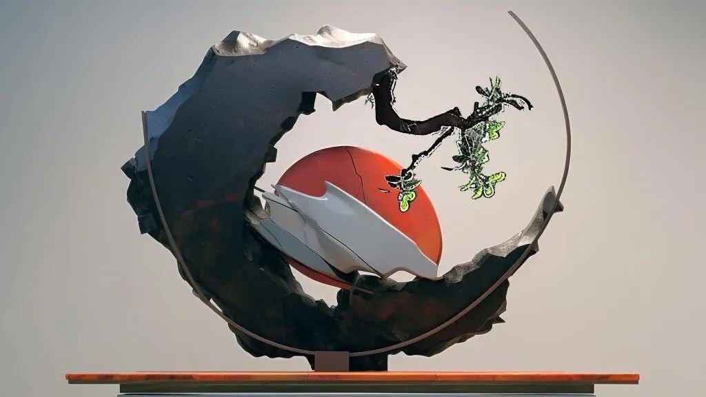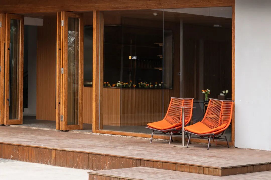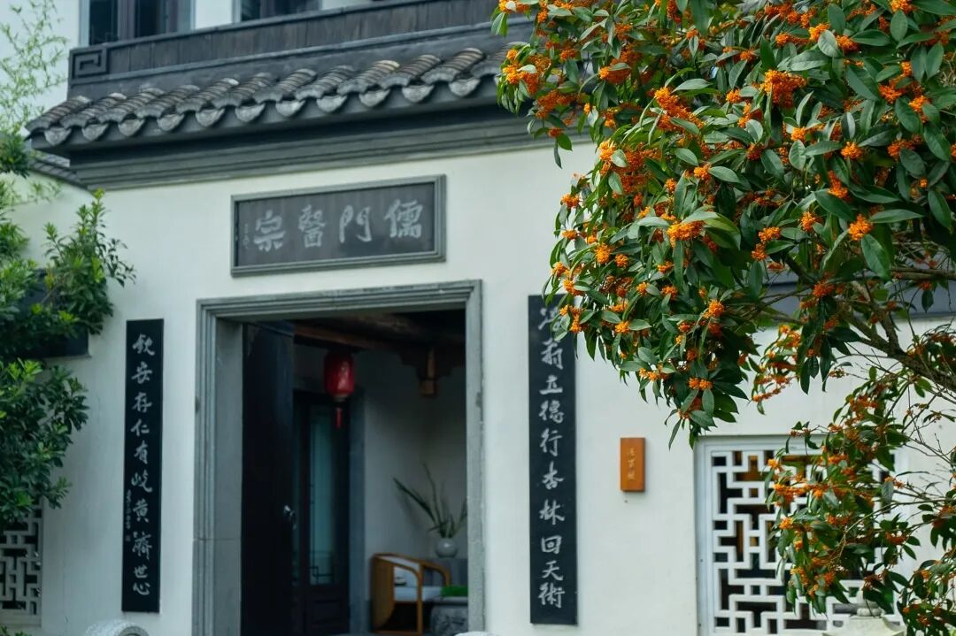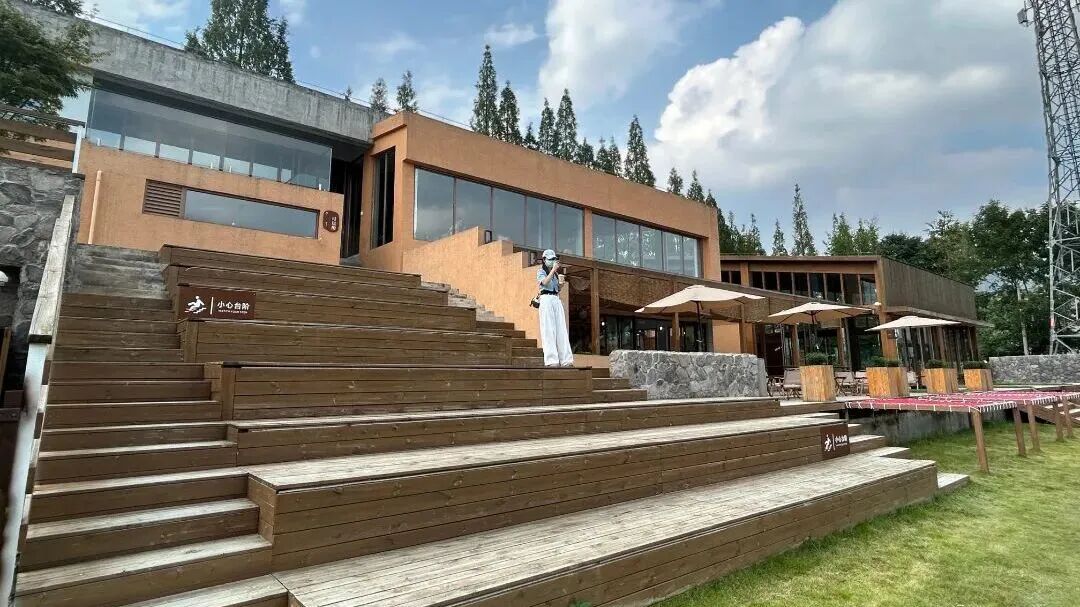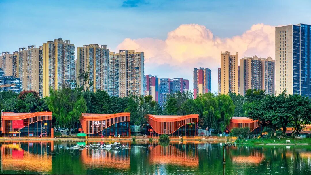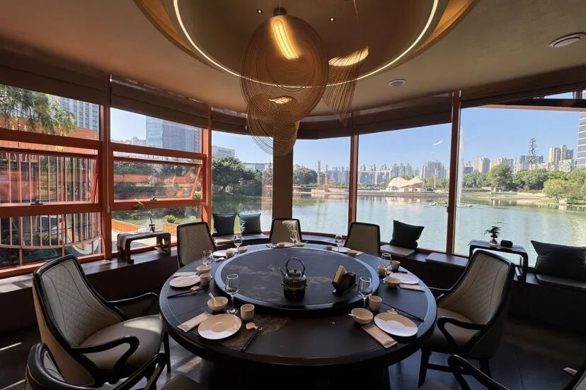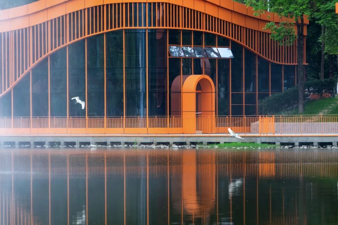 橘色建筑、潋滟湖光、白鹭蹁跹