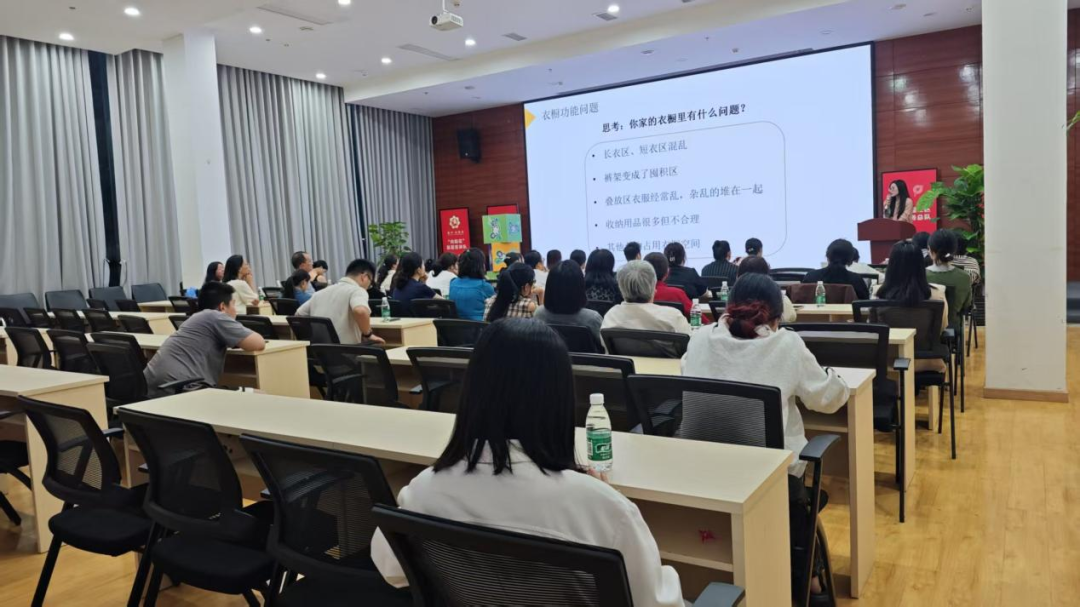 课程中,老师介绍了衣橱样式分类,详细讲解了储藏区、叠放区等5大功能区规划建议,针对收纳痛点演示3类叠衣方法,分享“清空-集中-分类-归位-陈列”五步整理法,还带领学员练习了实用的衣服折叠方法。
