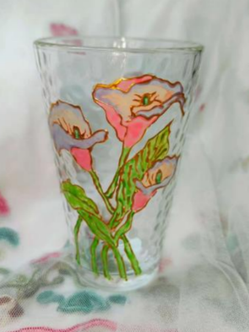 在玻璃杯上描绘、调色、勾勒