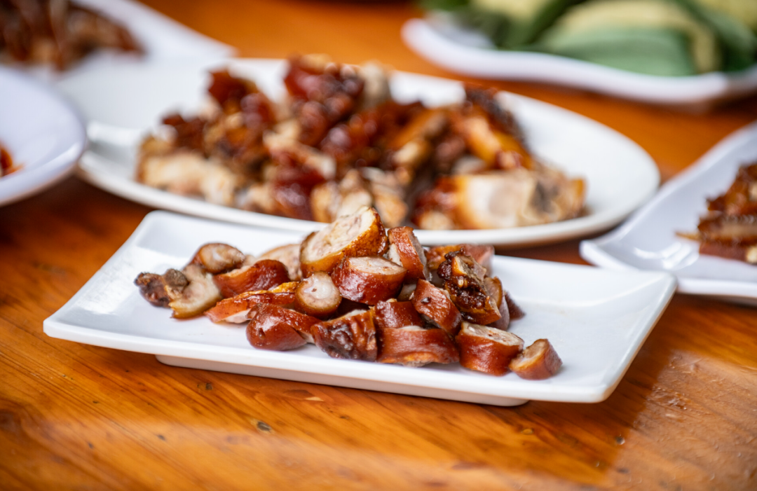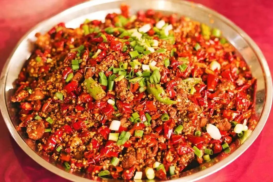 使用七星蒜、汉源花椒、干辣椒等腌制鸡肉