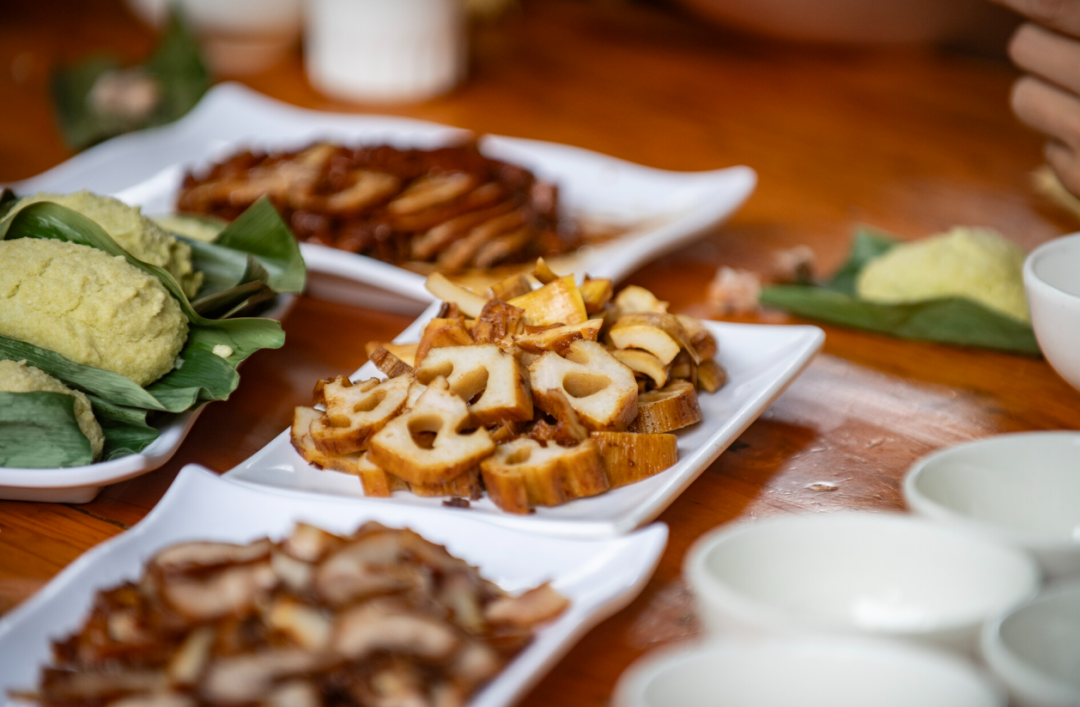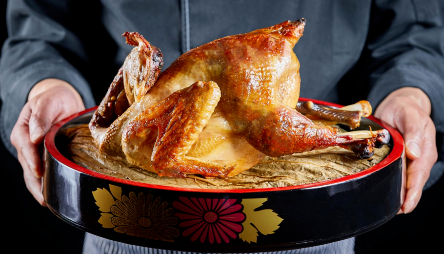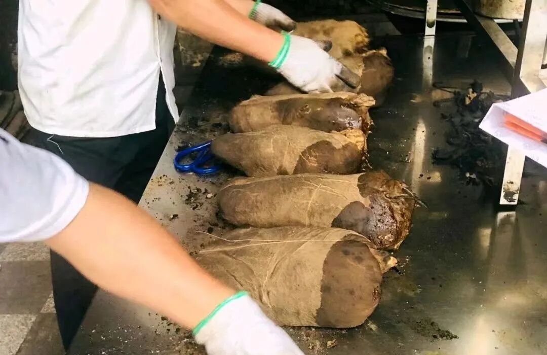 再用荷叶拌黄泥黑土包扎,置于特制烤炉中