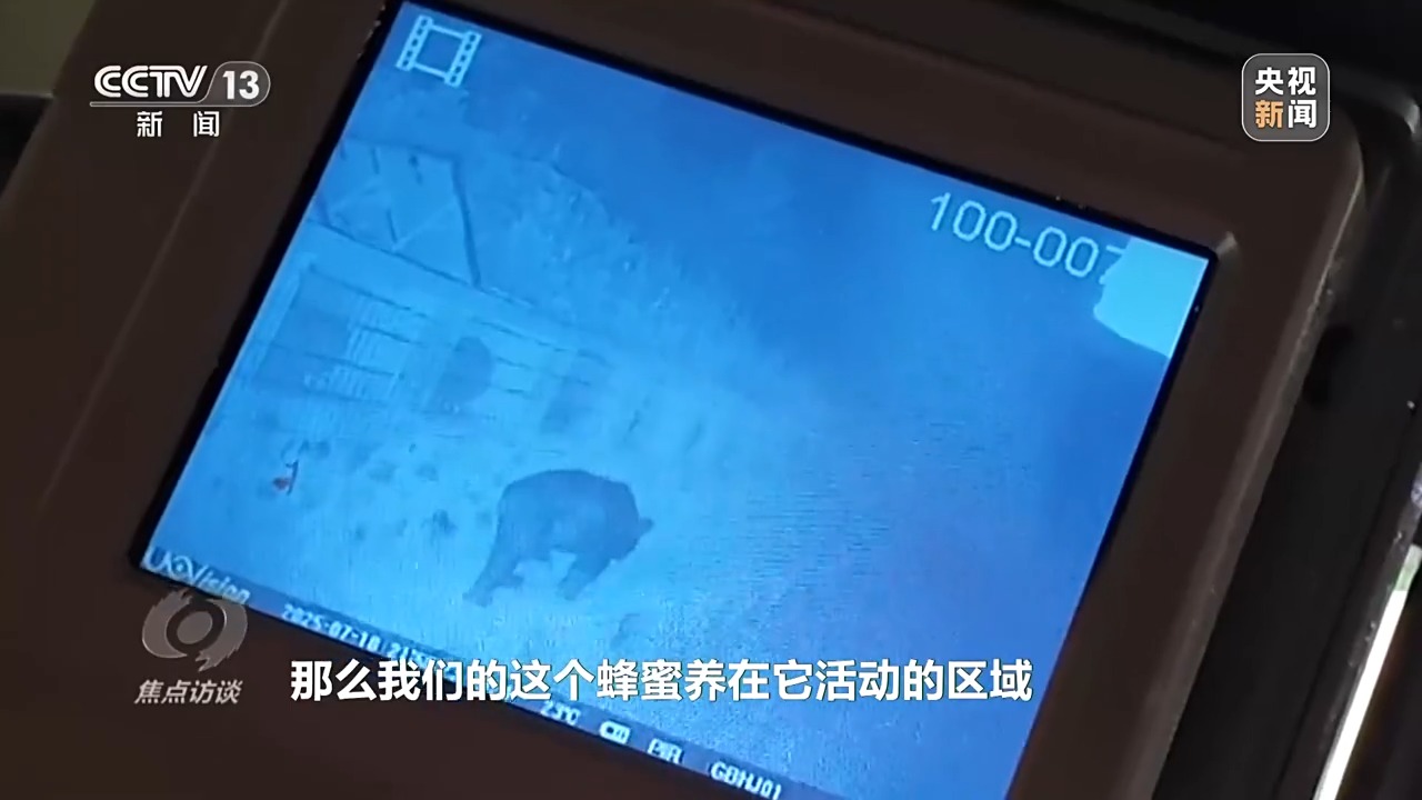 四川平武县关坝流域自然中心理事长、四川平武县木皮藏族乡关坝村支部书记 孟吉:空的都被黑熊吃掉了,有一部分里面箱子也是空的,也是被黑熊吃过的,今年至少光顾5次以上。这就是一个冲突,我们的蜂蜜养在它活动的区域,它适当吃一点,就像交税一样,每年给你几箱吃,感觉也没啥子太大的关系。