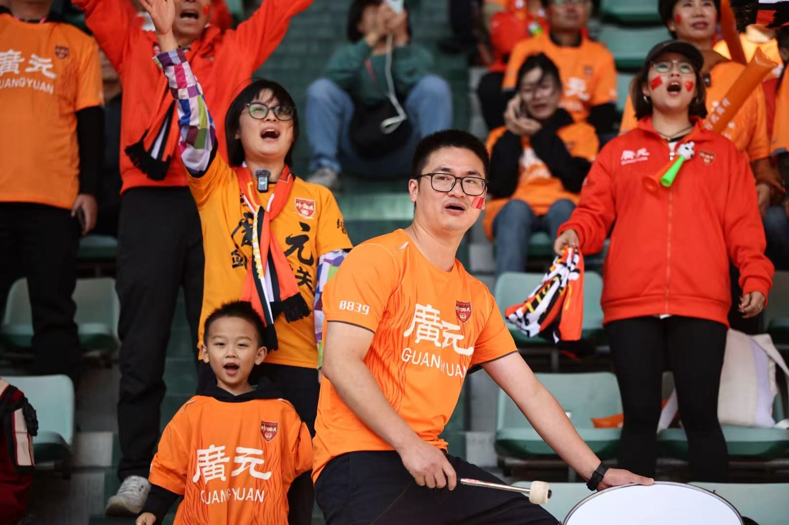 在这片温暖的氛围中,看台上广元球迷的助威阵营里,一家三口的身影格外动人。“加油,加油!广元雄起!”小男孩的呐喊声越来越响亮。他的爸爸何林俊“变身”助威鼓手,有力的鼓点瞬间点燃全场;妈妈吴小玉则又蹦又唱,时不时把孩子抱起来一起欢呼。为了支持家乡的球队,他们专程从成都开车赶来,哪怕看完比赛要连夜返回,也觉值得。