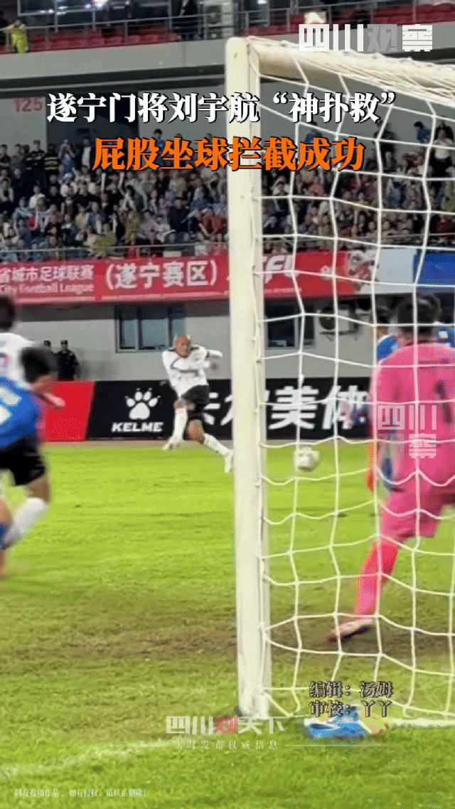 刘宇航自己就没闲着,继上轮完成头球绝平后,本轮又献上了“屁股坐球扑救”。管你什么射门,我粉嘟嘟的遂宁门神“铁腚”不让进!在他坐下去那一刻,所有球员都愣了几秒,这样的扑救恐怕很多几十年老球迷都没有见过。用网友的话说,宇航已经可以媲美国脚级别的门将了,模板都给他定了——“刘殿坐”(刘殿座)!