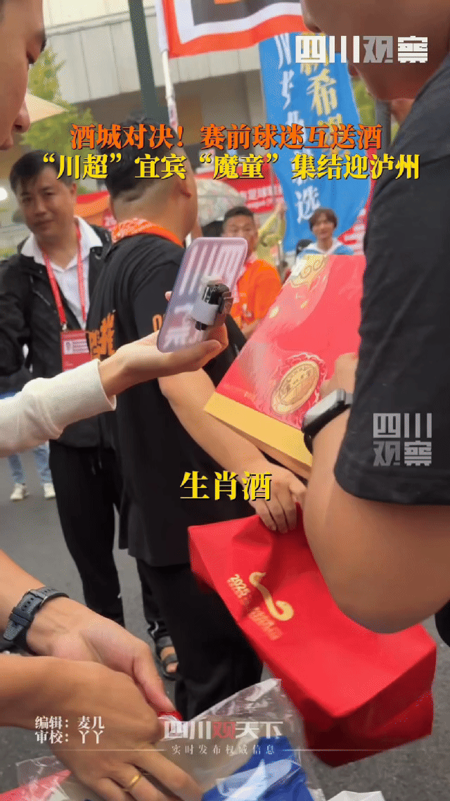 宜宾长江首城队和泸州窖香队本轮上演“酒都酒城德比”,这对“川南”兄弟的球迷们赛前见面压根没有一点“剑拔弩张”,不仅互赠美酒,还直接碰着杯就喝上了。你看,咱四川各市州不仅情谊深厚,大家的“精神状态”也都很超前,松弛感拉满!