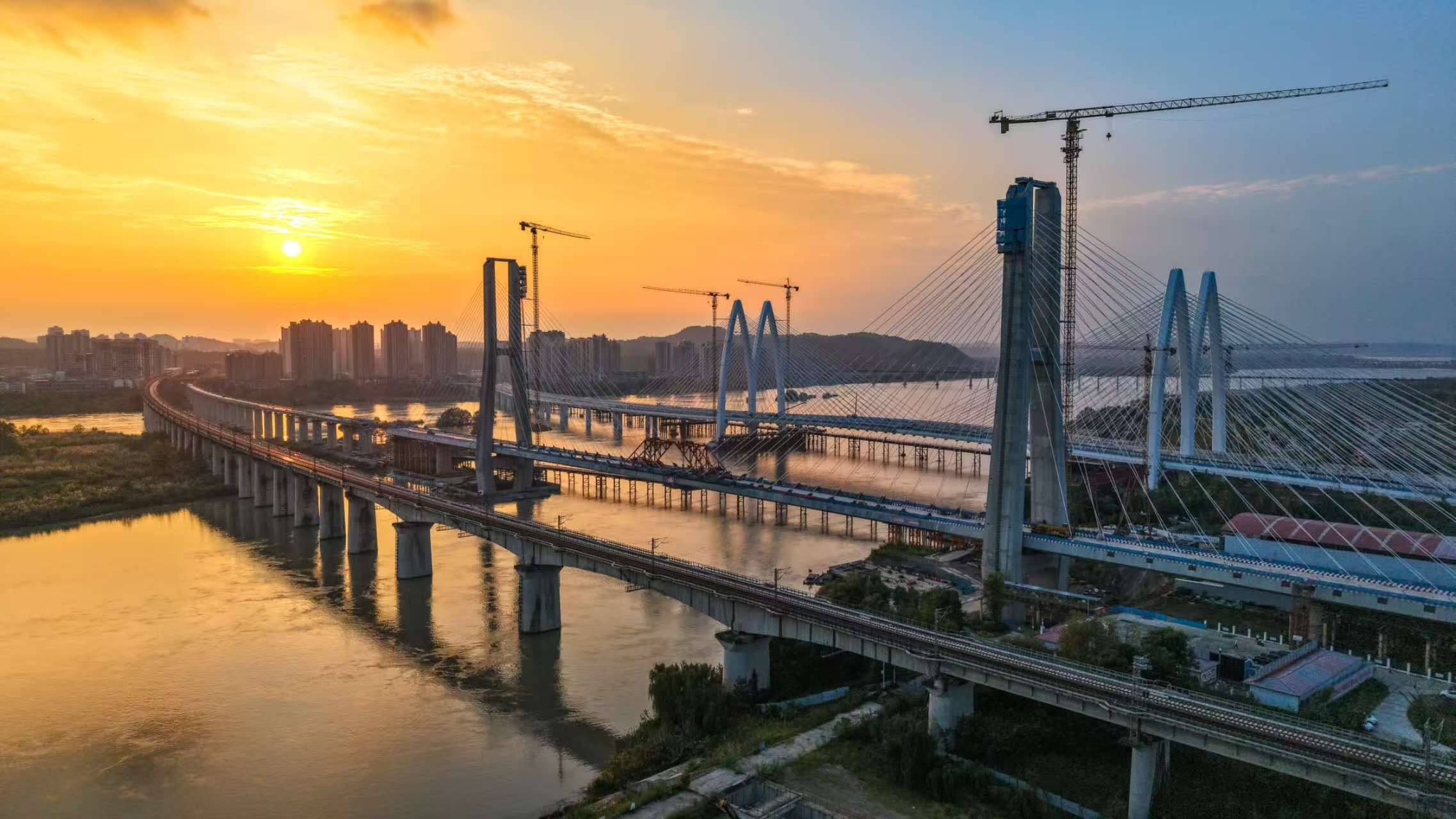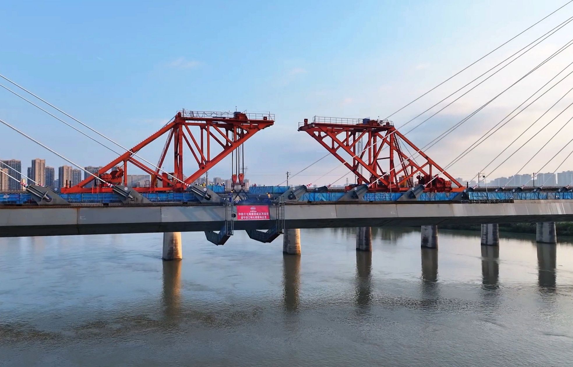 成达万高铁新进展 西南第一跨度高铁钢混结合梁斜拉桥合龙
