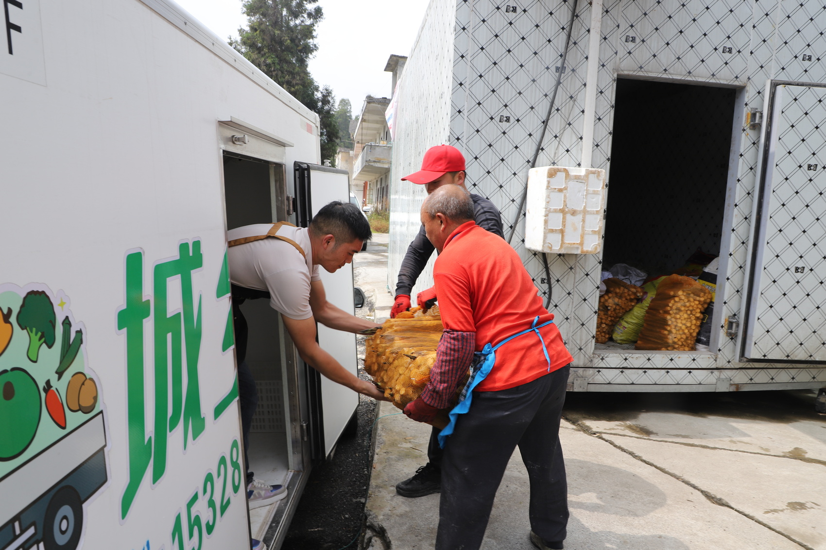 移动冷库内的鲜笋被搬运到“城乡直通车”上,通过冷链运输到县城。 兴文县融媒体中心供图