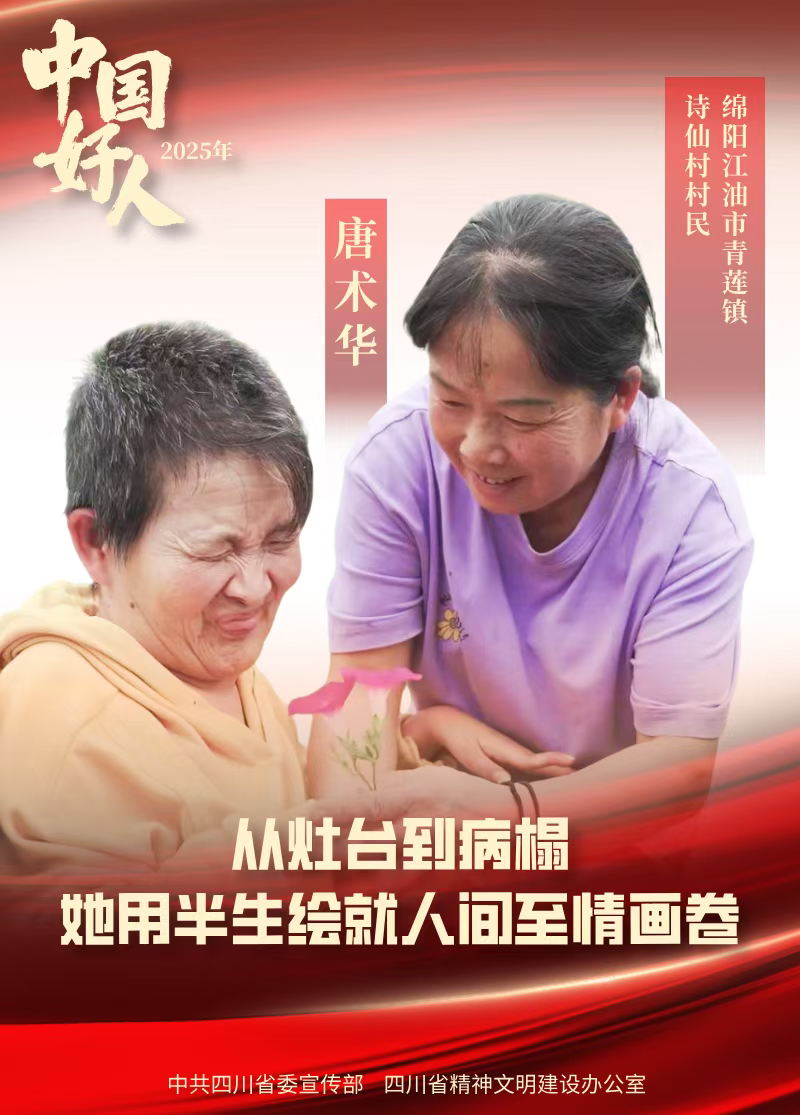 四川省3人榜上有名,其中,绵阳江油市青莲镇诗仙村村民唐术华,照顾瘫痪妹妹28年,被评选为“中国好人榜”孝老爱亲榜样。