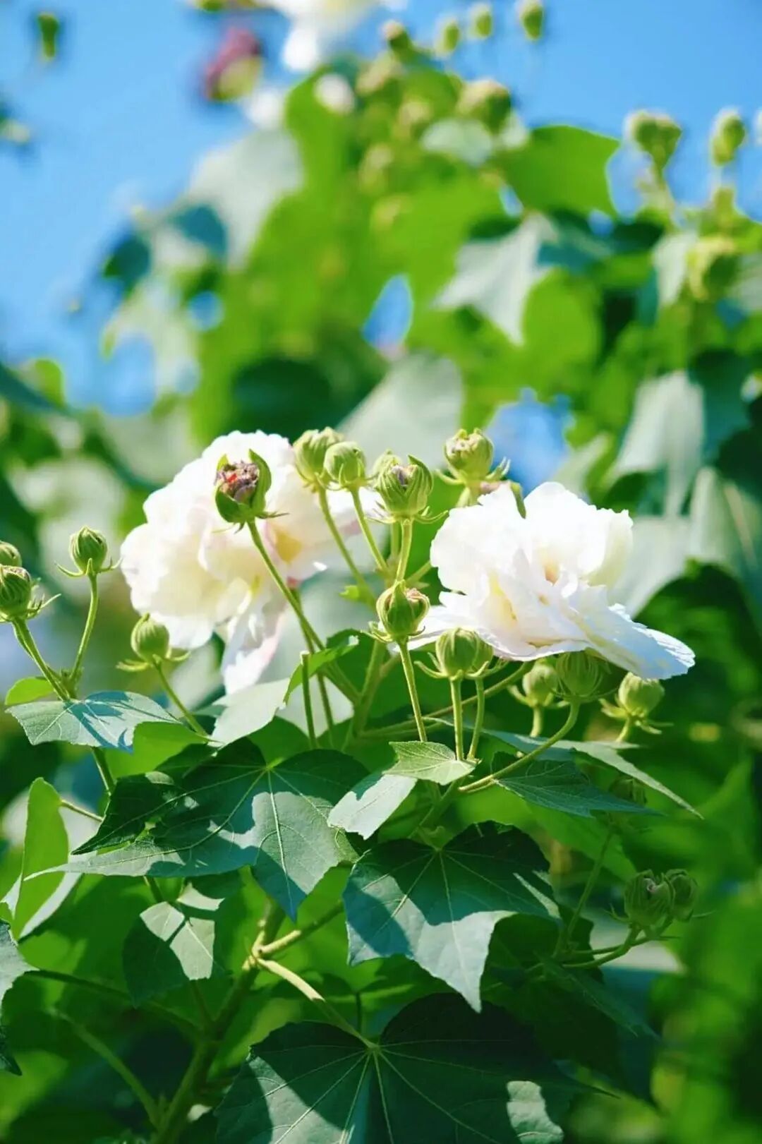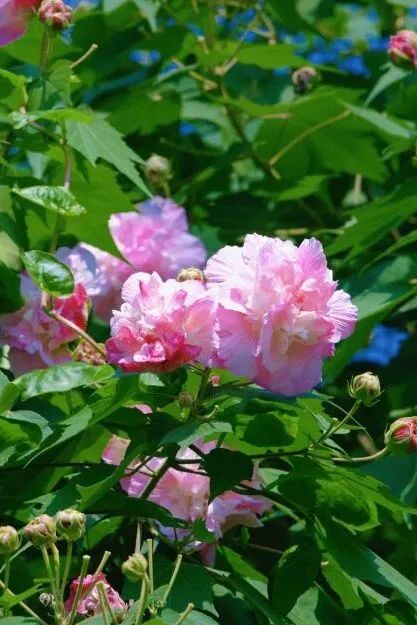 清雅娇艳的芙蓉花竞相绽放