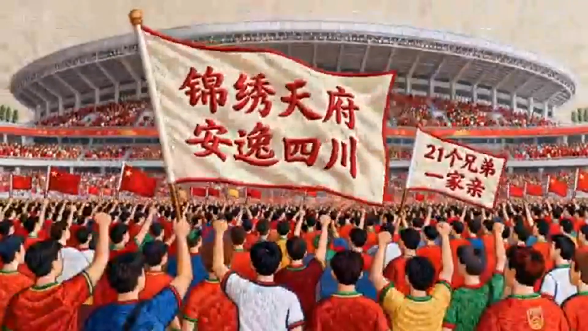 赛场边的每一声呐喊,看台上的每一张面孔,都如同绣娘手中千万条丝线,“21个兄弟”所有的热烈与期盼,密密地织进了“锦绣天府 安逸四川”这幅作品的肌理之中。
