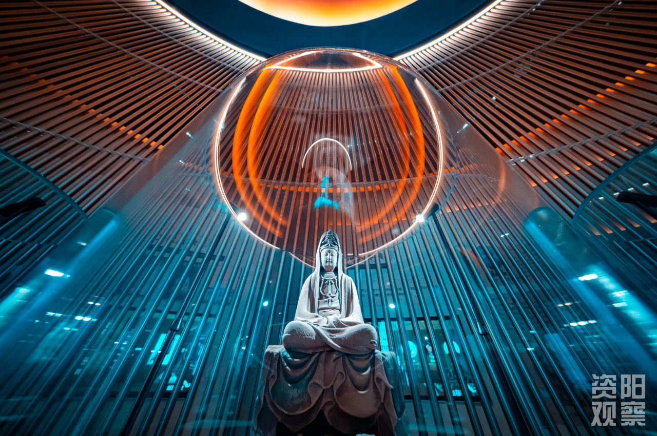 当时光的车轮驶入2025年,资阳这座古老城市正以创新科技激活历史遗产。安岳石窟数字展示中心运用Mapping投影、脑电波交互等前沿技术,将分散的石刻造像转化为震撼的沉浸式集中体验;球幕影院里的《山岳颂安》光影电影,让千年造像“走出”深山,焕发新的生命力。以“时光之眼”为主体建筑造型的资阳市博物馆,以“天下资阳人”为主题,巧妙串联起从濛溪河遗址群到近现代资阳的文明印记,通过丰富的展陈让陈列在资阳大地上的遗产真正“活”起来。