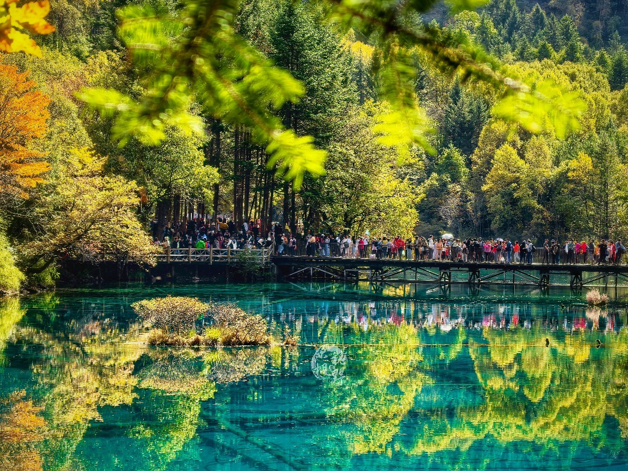 九寨沟秋日胜景吸引大批游客