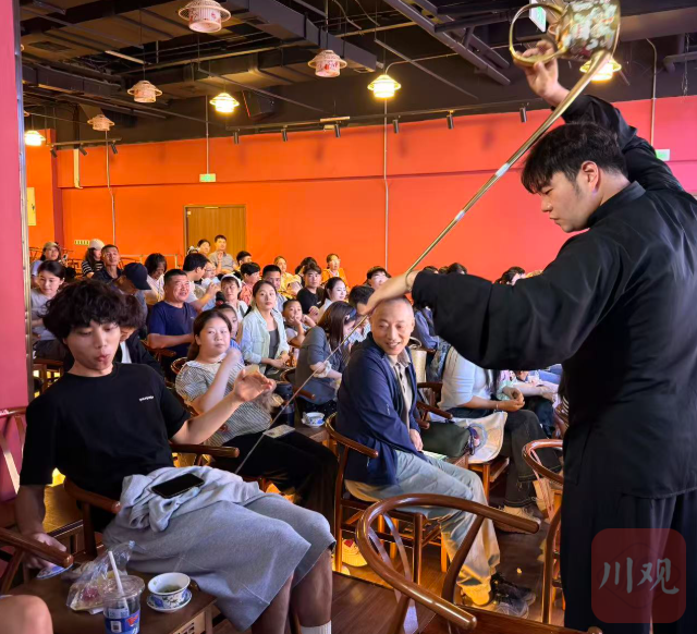 “我们的定位就是小剧场,有点像脱口秀剧场,能跟观众有一些近距离的互动,不像大剧场,它们走的是舞台氛围和效果。”百家班川剧团“少班主”陈诚介绍。