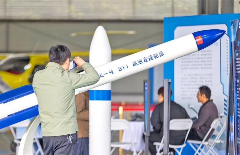 “长风一号高亚音速靶弹”吸引市民打卡。
