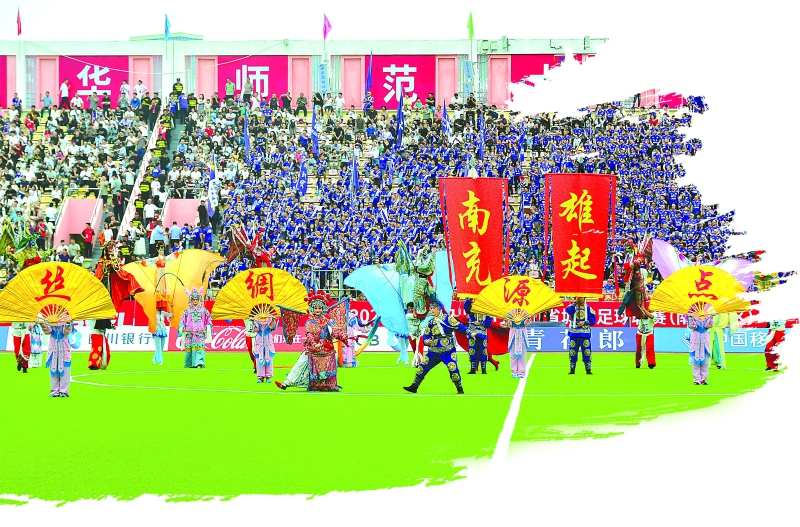 一唱一和,舞姿翩跹;一颦一笑,乡音缭绕。26日,南部花灯戏惊艳亮相“川超”绿茵场,古老非遗与足球激情完美邂逅,在掌声与欢呼中实现跨越时空的“双向奔赴”。