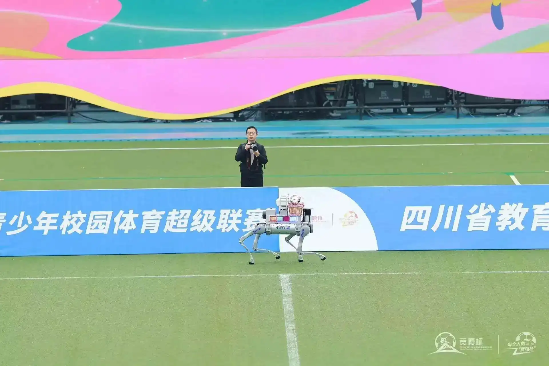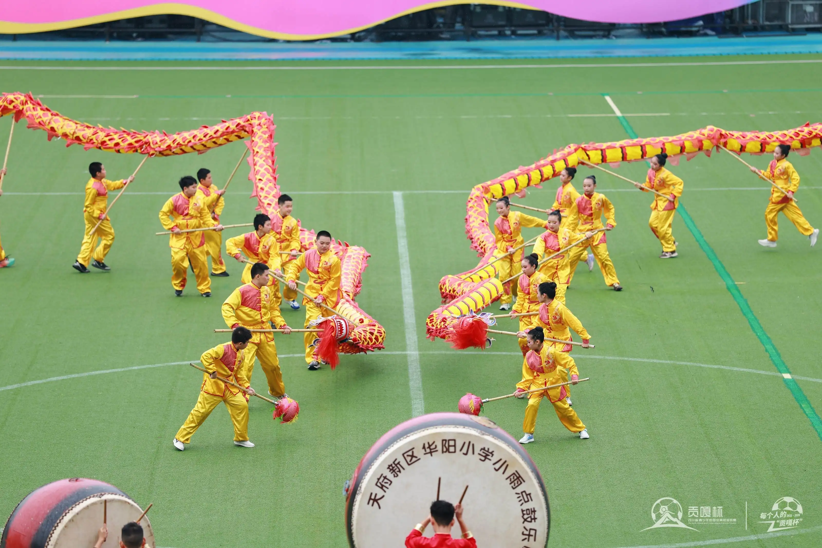 开幕式结束后,机器狗送上比赛用球,成都蓉城俱乐部中超主力中后卫杨帅为比赛开球,揭幕战正式打响,由四川天府新区籍田小学对阵资中县水南镇中心学校,两支平均年龄不满11岁的女子球队展开激烈对抗,充分展现了拼搏精神与校园体育的蓬勃生命力。
