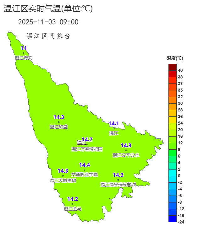 11月6日(周四)阴天间多云,早晚有分散小雨,气温14~17℃;