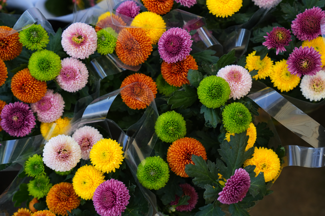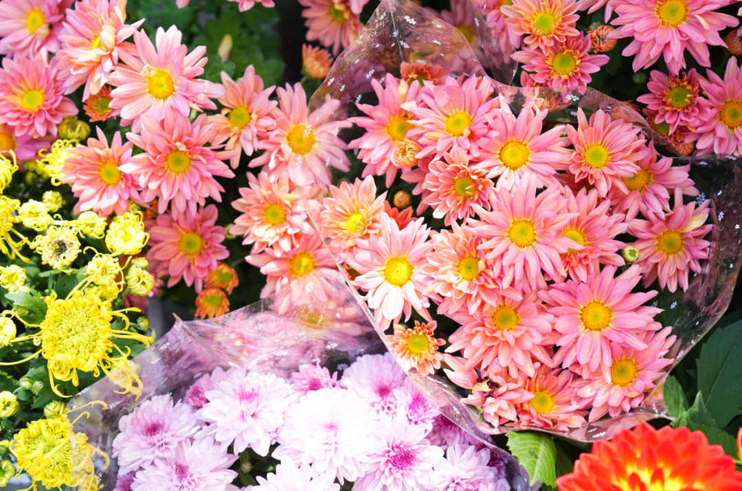 明亮的黄菊簇拥在一起如同温暖的阳光