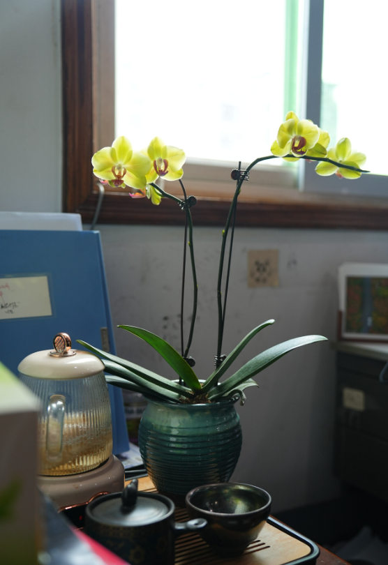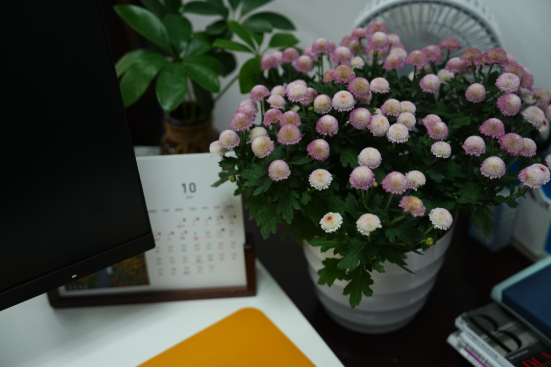 “菊花浇水要见干见湿,土壤表面干了再浇水,喜光但要避免暴晒。”