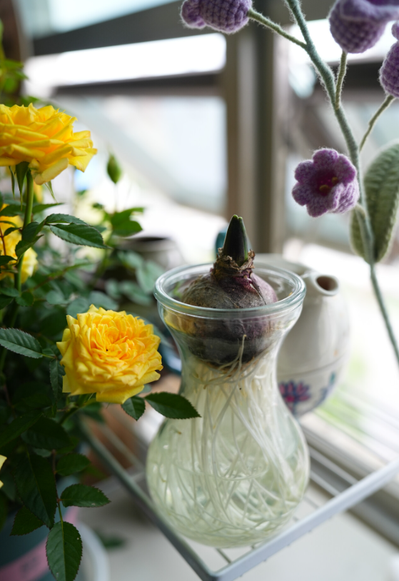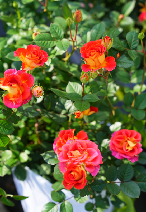 “月季喜光,要保证光照充足,土壤不干不浇水,浇水一定要浇透。”