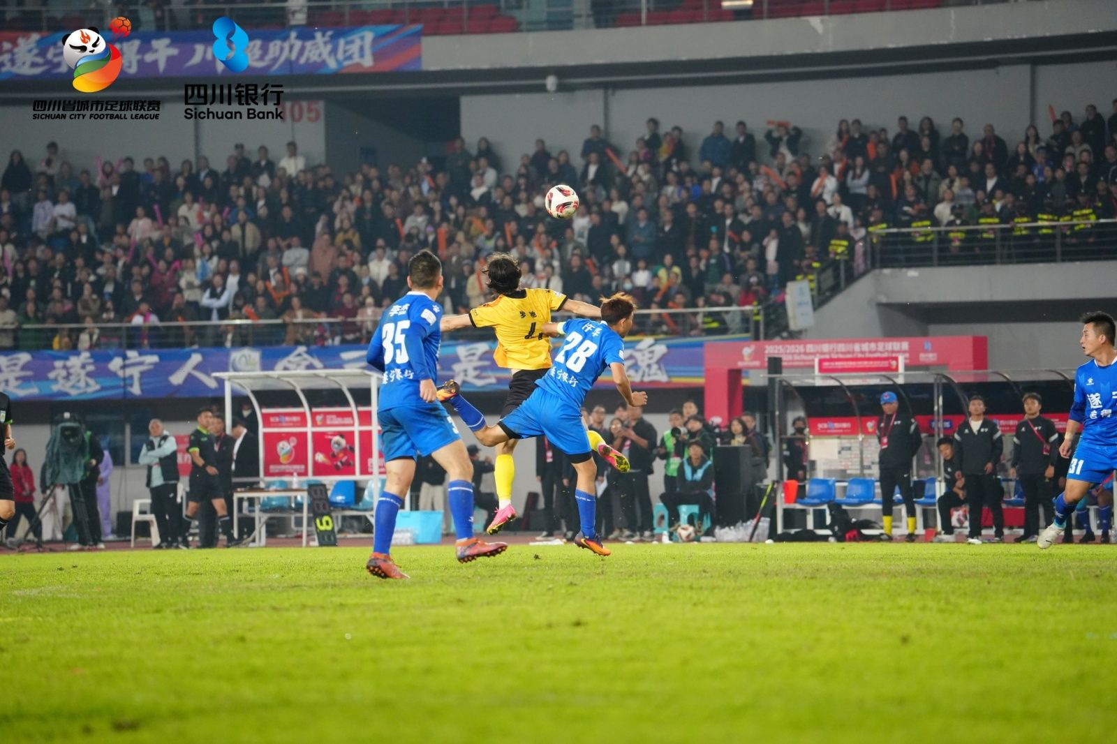 在“川超”赛场,遂宁队显然不是最强的队伍——6轮战罢,位列“川超”总积分榜第16位,川东赛区倒数第2,首秀更是0:6不敌成都队。但正是这样一支不被看好的弱旅,却用“豁出去、舍得干”的劲头,上演了一个个难忘瞬间。第一循环赛阶段,除面对成都队外,其他比赛均有进球;第2轮89分钟,门将刘宇航更是头球破门,用非常规的方式扳平比分,守住家乡荣耀。幸运的是,这份精神在第6轮主场对阵成都队时发挥到了极致。