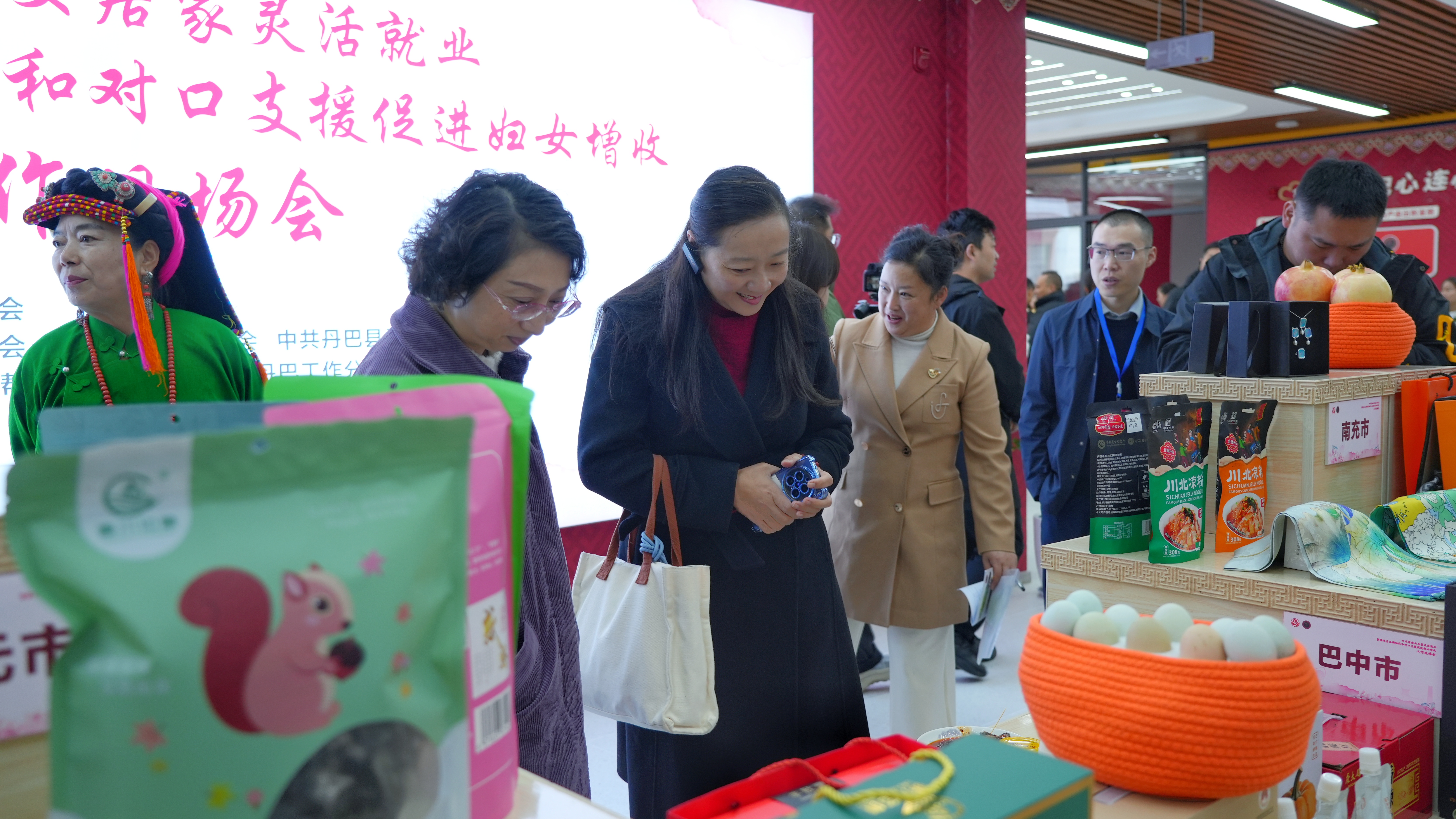 现场会下午设置的甘孜州居家灵活就业产品成果展,成为各地妇联交流学习、寻求合作的“热土”。精美的藏族刺绣、富有创意的文创产品、优质的农特加工品……琳琅满目的展品,不仅展现了甘孜妇女的巧思与才华,也印证了“守着家、抱着娃、挣着钱”的美好愿景正逐步实现。