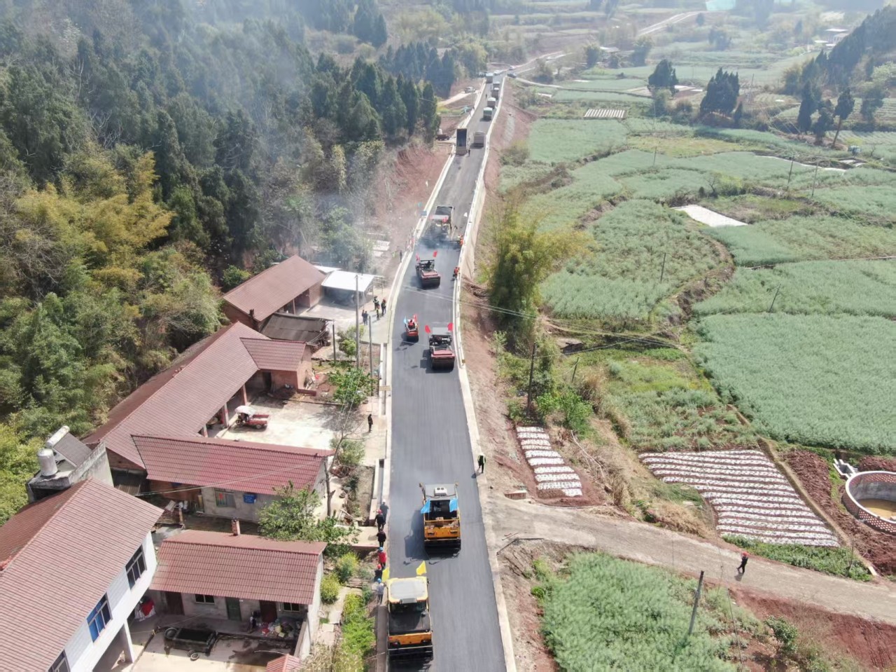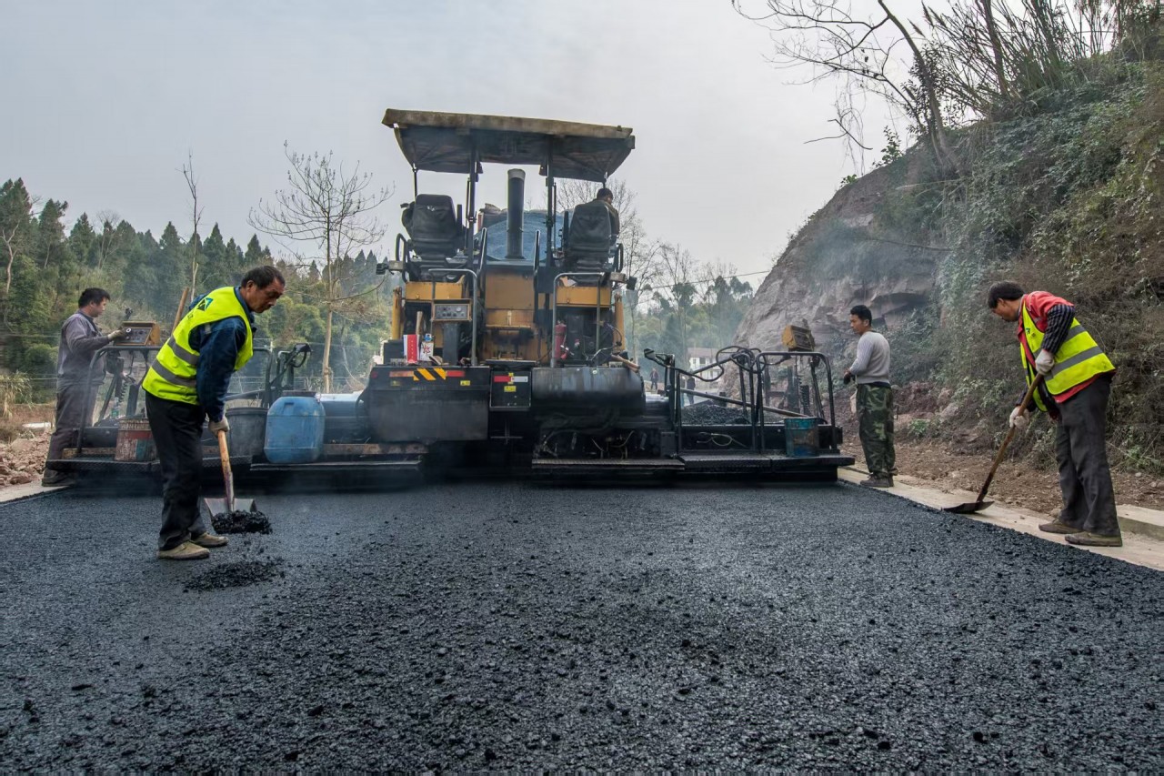 安岳县省道102(文大路)二标段路面改造工程施工现场。