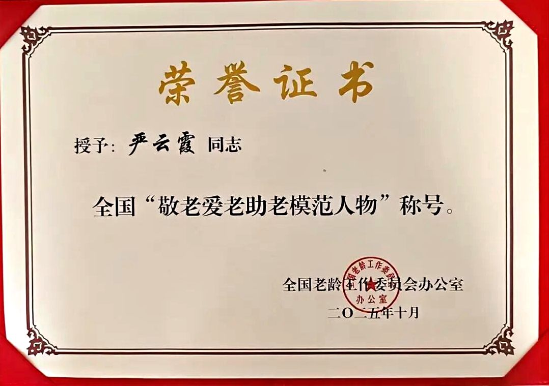 8年来,严云霞主持参与多项科研课题,探索建立“334”培训体系(即3个融合、3个层面、4个要素。第一个“3”指学科融合、课程整合、理论与实践相结合三方面的融合,第二个“3”指培训基地—养老机构—社区三个层面,“4”指党建引领—法制护航—技能锤炼—人文浸润的立体化思政教育框架),实行“721”学习法则(即70%实践、20%反馈、10%理论)。针对低收入、失业人群及家庭照护者开展“善护颐年”养老服务人才培训,提升家庭照护能力,减轻了家庭照护负担。她牵头举办医养服务人才培训,毫无保留地分享经验,助推省内外10余家医养机构落地。在她的带领下,中心荣获“全国医养结合示范机构”等多项荣誉,成为区域医养融合发展的标杆,吸引了13个省、市、自治区2000余人次前来参观调研。