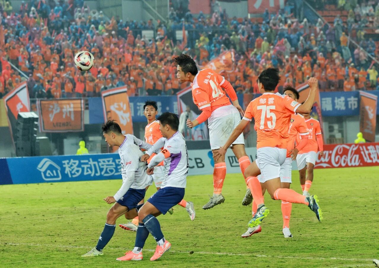 比赛在雨中进行。开场后,资阳队在后场密集防守,泸州队趁势大举压上,在资阳队半场发起持续围攻。上半场后半段,资阳队调整策略,慢慢组织起有威胁的攻势。第32分钟,资阳队原本利用定位球破门得分,但被边裁举旗示意越位在先。这个被吹掉的进球,仿佛是资阳队整个赛季的缩影——无限接近破门,却总是差之毫厘。易边再战,泸州队加强进攻。第67分钟,泸州队41号球员魏虹霖头球破门,打破了场上的平衡。第78分钟,魏虹霖再次利用任意球的机会破门,梅开二度。面对两球落后的局面,资阳队全力发起反击,试图扳回比分,但始终未能突破对方防线。0∶2的比分保持到终场,资阳队的连败纪录延续到第六场。