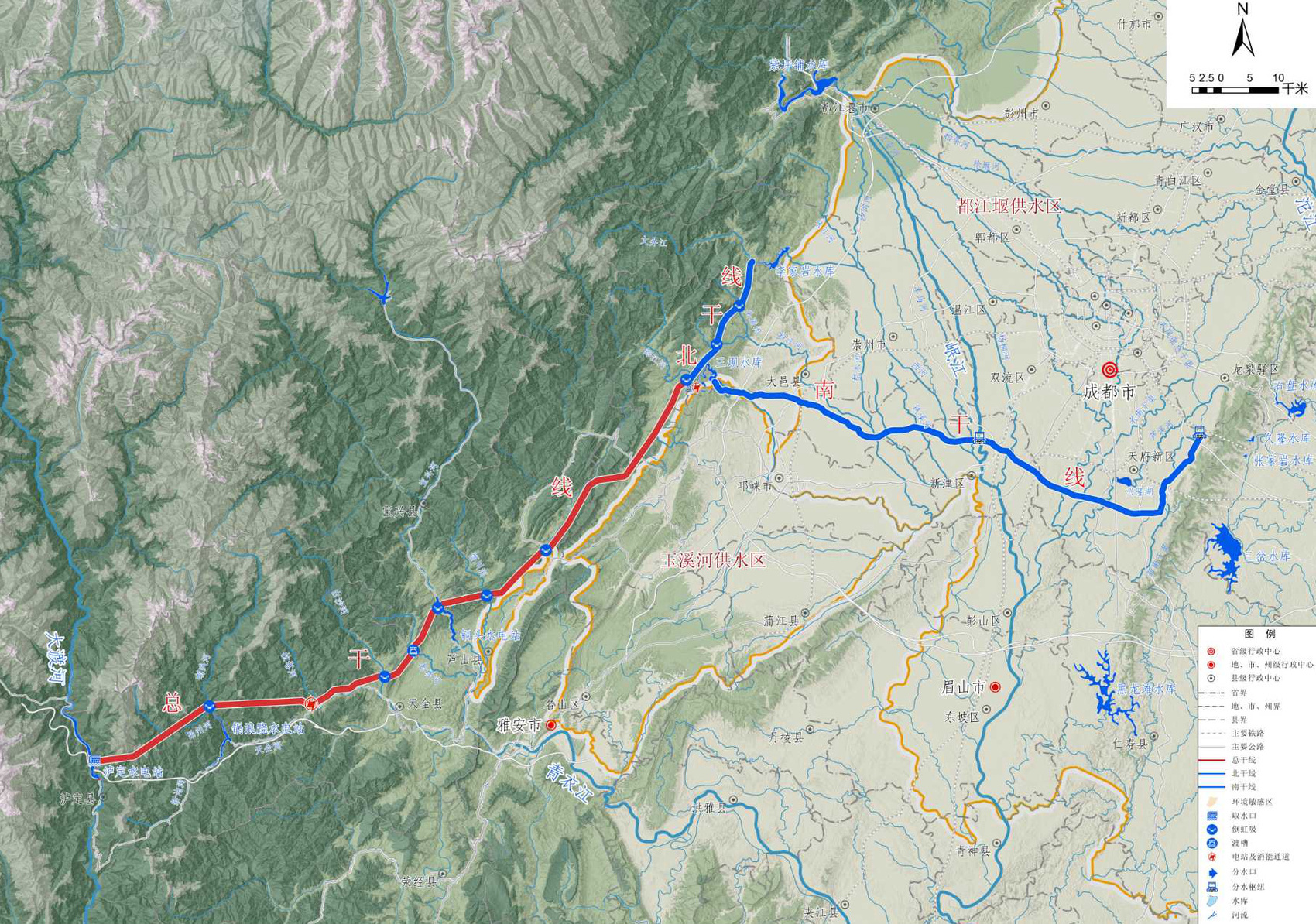 引大济岷工程总布置图。四川省水利厅供图