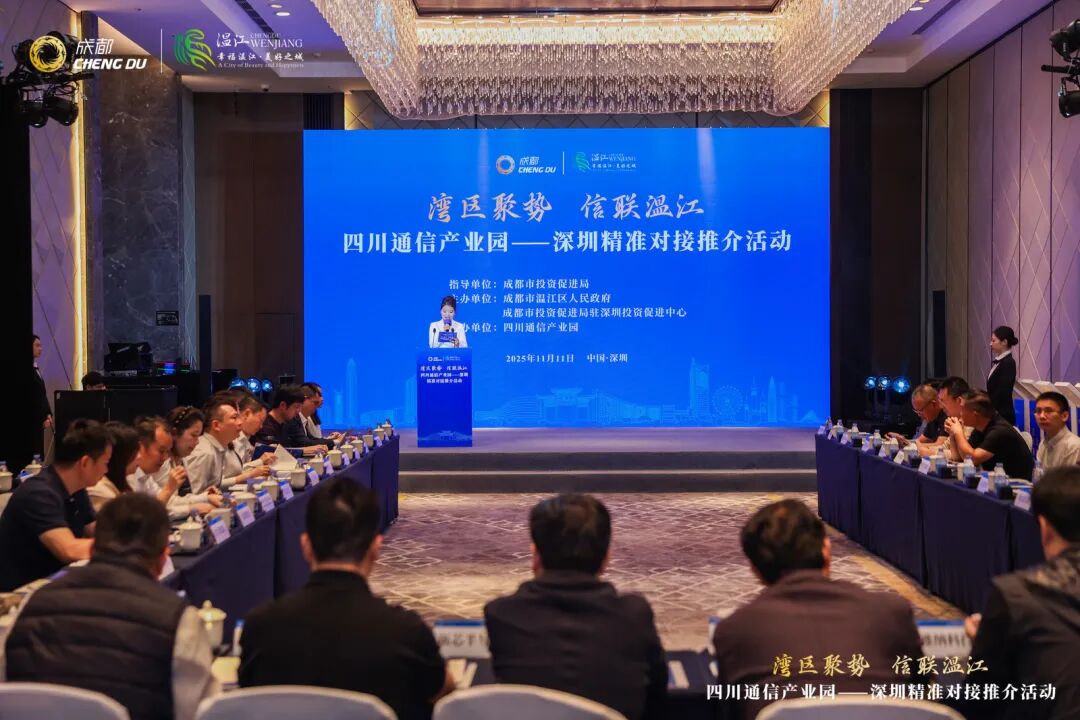11月11日,由成都市温江区人民政府、市投资促进局驻深圳投资促进中心主办,四川通信产业园承办的“湾区聚势·信联温江”精准对接推介活动在深圳举行。