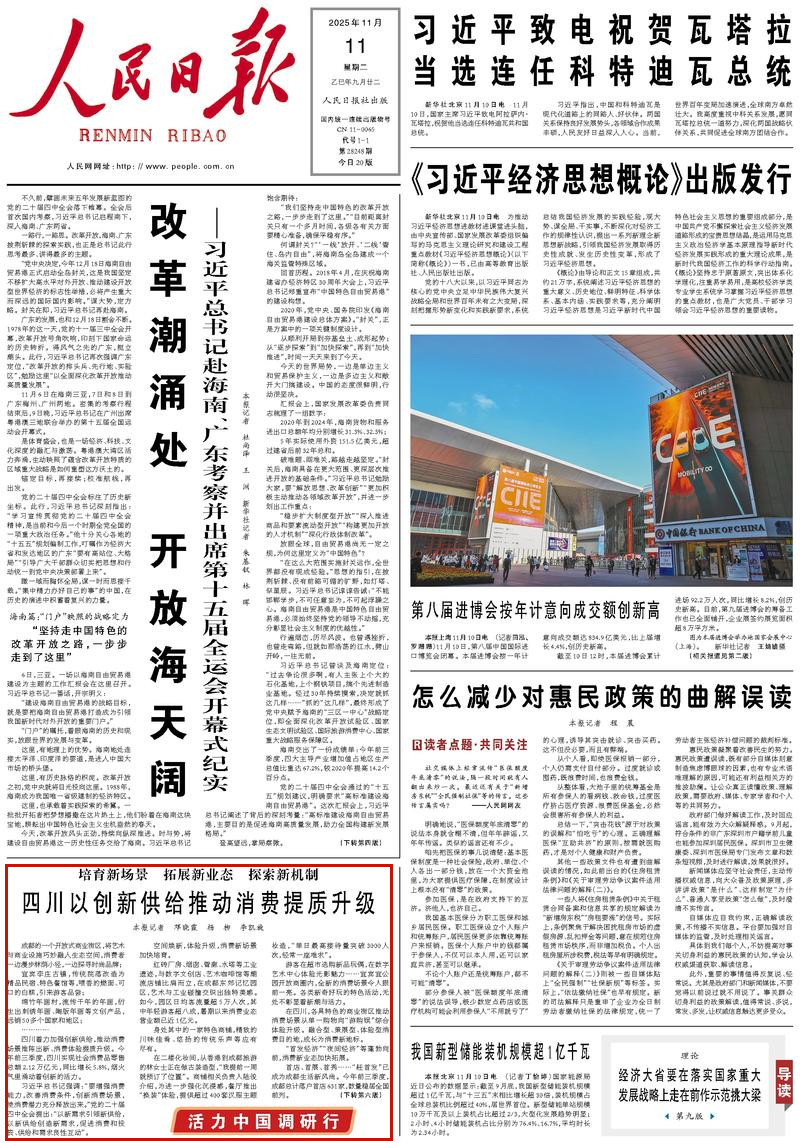 人民日报头版关注:四川以创新供给推动消费提质升级
