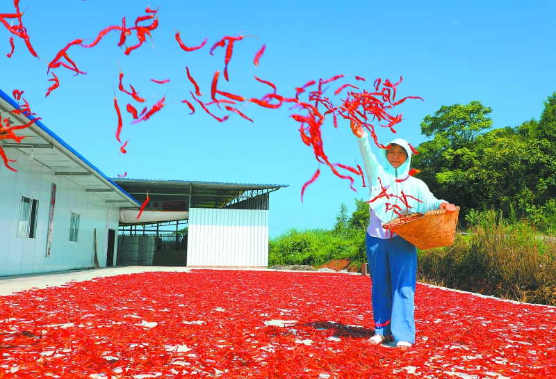 凤鸣镇辣椒种植基地丰收,村民晾晒忙。(资料图)