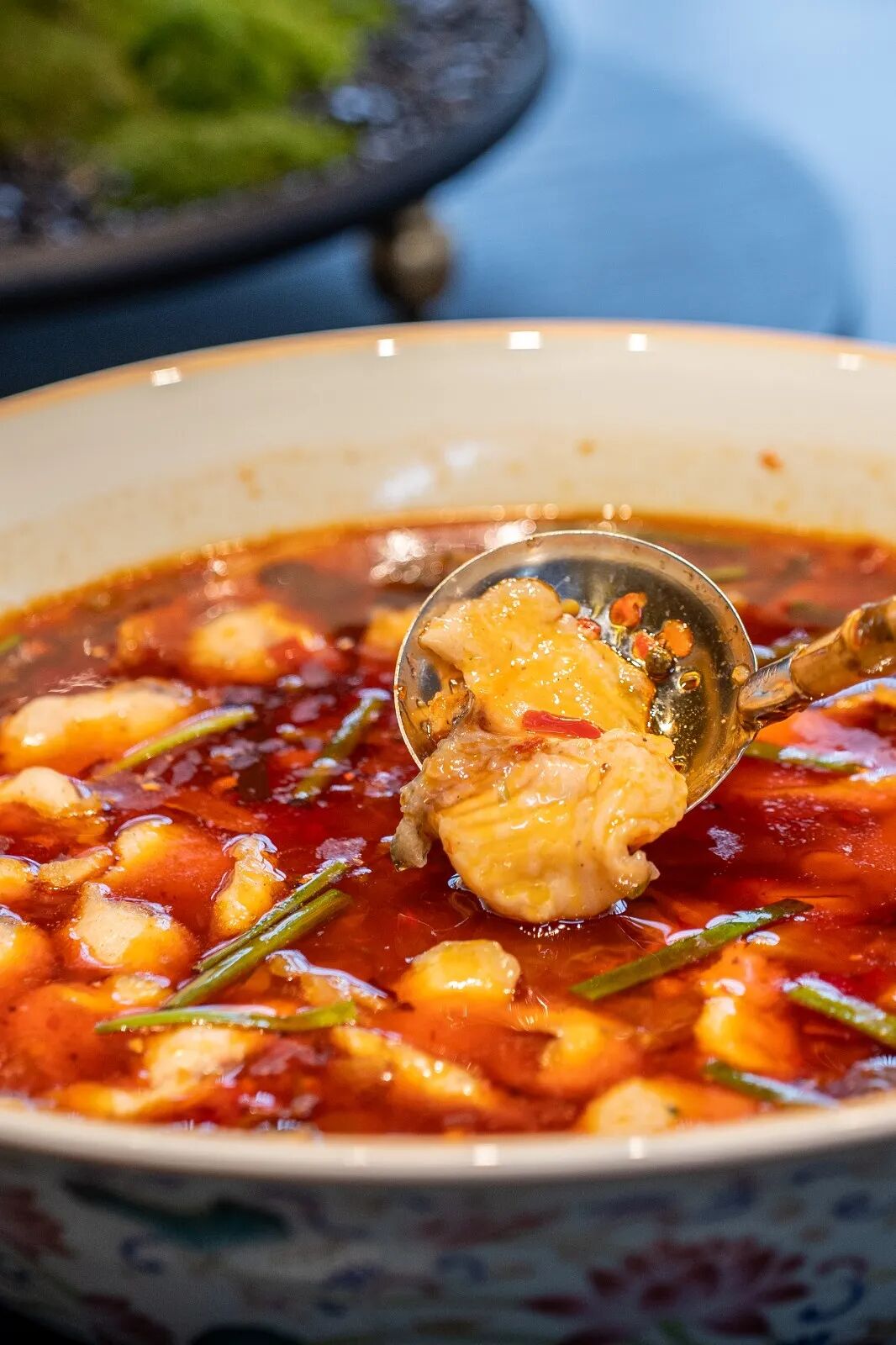 餐桌上,藿香翘壳早已上桌,紧致的鱼肉裹着独特的藿香香气,入口鲜嫩多汁;非遗土火锅咕嘟沸腾,鲜香的汤汁翻滚着荤素食材,还原四川坝坝宴的热闹滋味,氛围感十足。