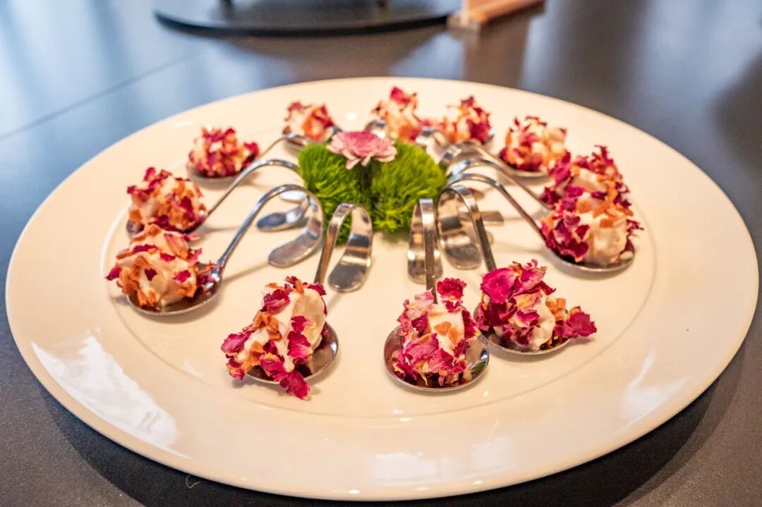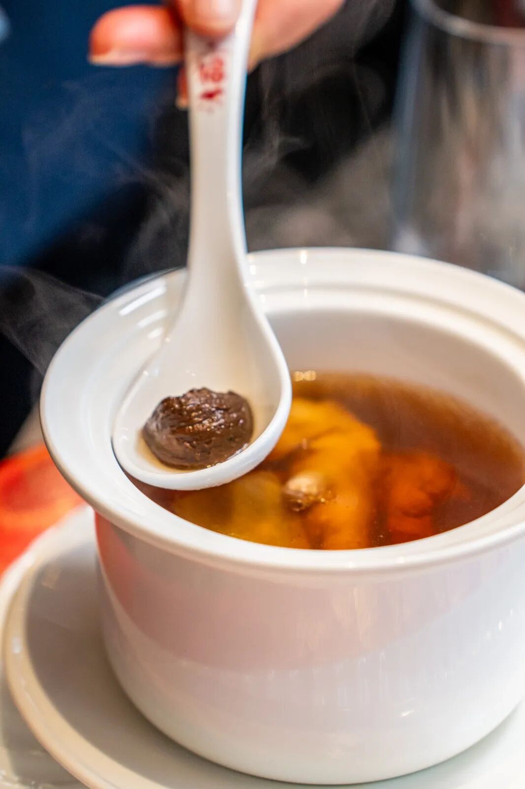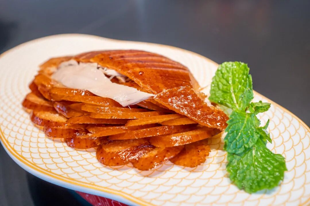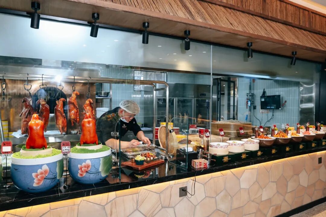 黑蒜养生汤则温润醇厚,洋溢着“从农田到餐桌”的新鲜与健康,一口下去暖意融融。此外,玫瑰虾球的鲜甜、广式菠萝包的松软、酸汤清波鱼的酸辣,还有跨界而来的北京烤鸭,各地的特色风味在此碰撞,成为开放包容的“温江味道”,满足消费者的多元需求。