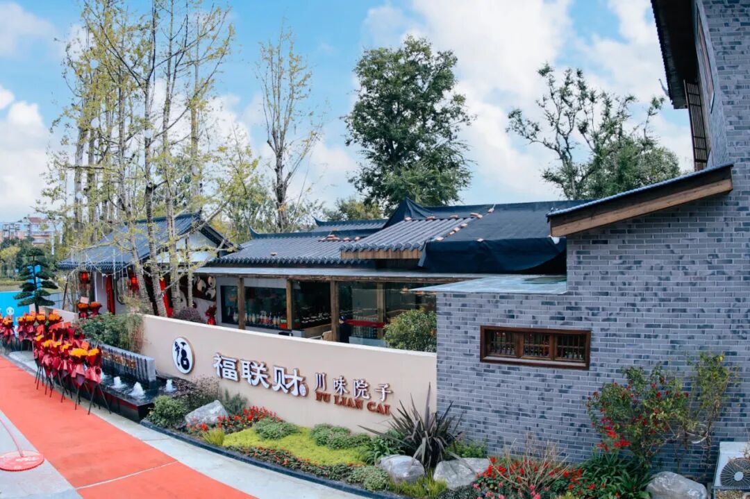 青砖灰瓦映树影,河畔微风送鲜香。来到温江区永宁街道清水河畔,一处融合川西院落韵味与森意庭院美学的新空间——福联财·川味院子,近日正式开门迎客。这里农商文旅融合创新,不仅能品尝川粤融合创新的独特风味,也能在林盘秀水间感受惬意的人间烟火。