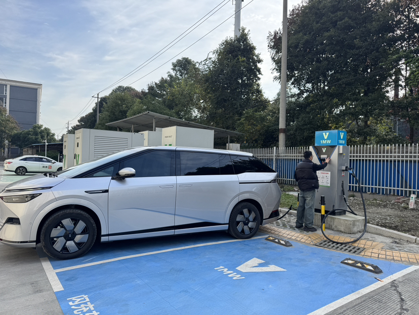 “以小鹏X9为例,普通充电站为其充满需要1个多小时,我们能压缩到30多分钟,关键在于功率优势与技术适配。示范站配备的兆瓦级充电终端,最高功率可达1000千瓦,即1兆瓦,远超主流普通超充站600千瓦的上限,设计超充枪根据车辆最快充电速度可达1秒钟充1公里。此外,交直流一体化设计与液冷散热技术的应用,既保证了大功率充电的稳定性,又实现了≤55dB的超静音运行。”