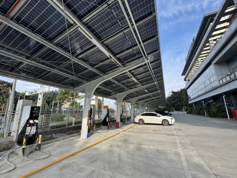 “该站利用车位顶部空间和厂房屋顶建设了一座装机容量为1.94MW的光伏车棚,年发电量约147万度,一年下来可实现碳减排1476吨。新建的储能设备相当于‘超大型充电宝’,可以在谷电价时充满电,然后在用电高峰时进行放电。”